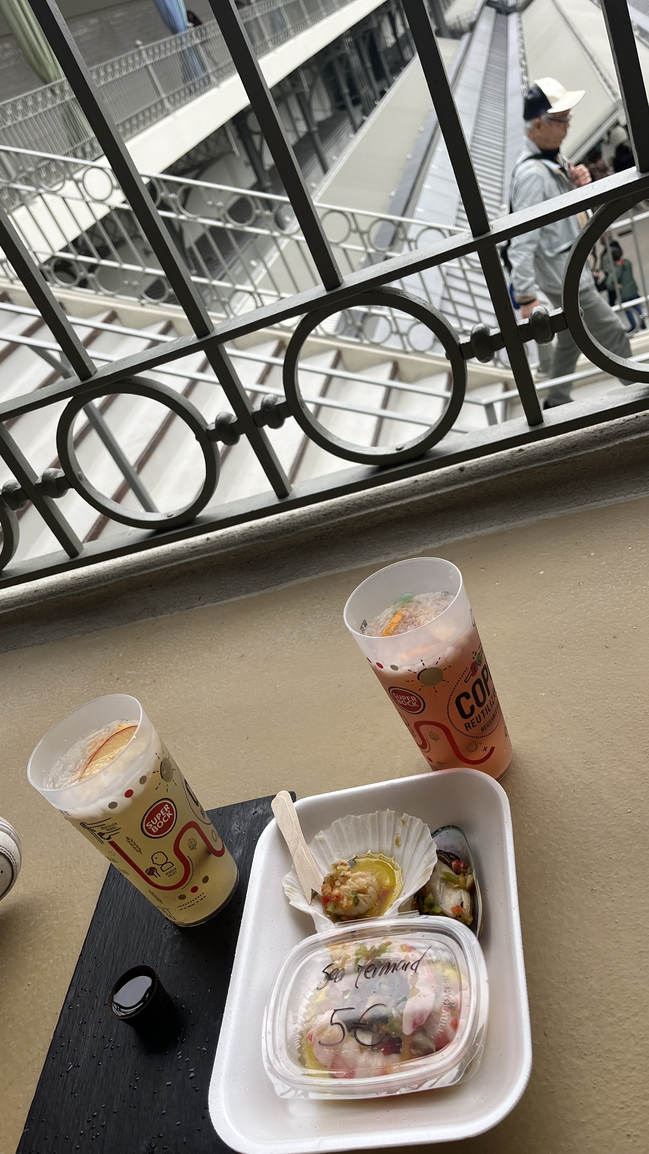 그리고 우리는 또 다시 걸어 볼량시장으로 갔다. 시장을 한바퀴 구경하고 각자 샹그리아 한 잔씩 들고 간단한 해산물 안주 들고 자리를 잡았다. 또다시 두런두런 대화를 나누고 있던 그때!!!
