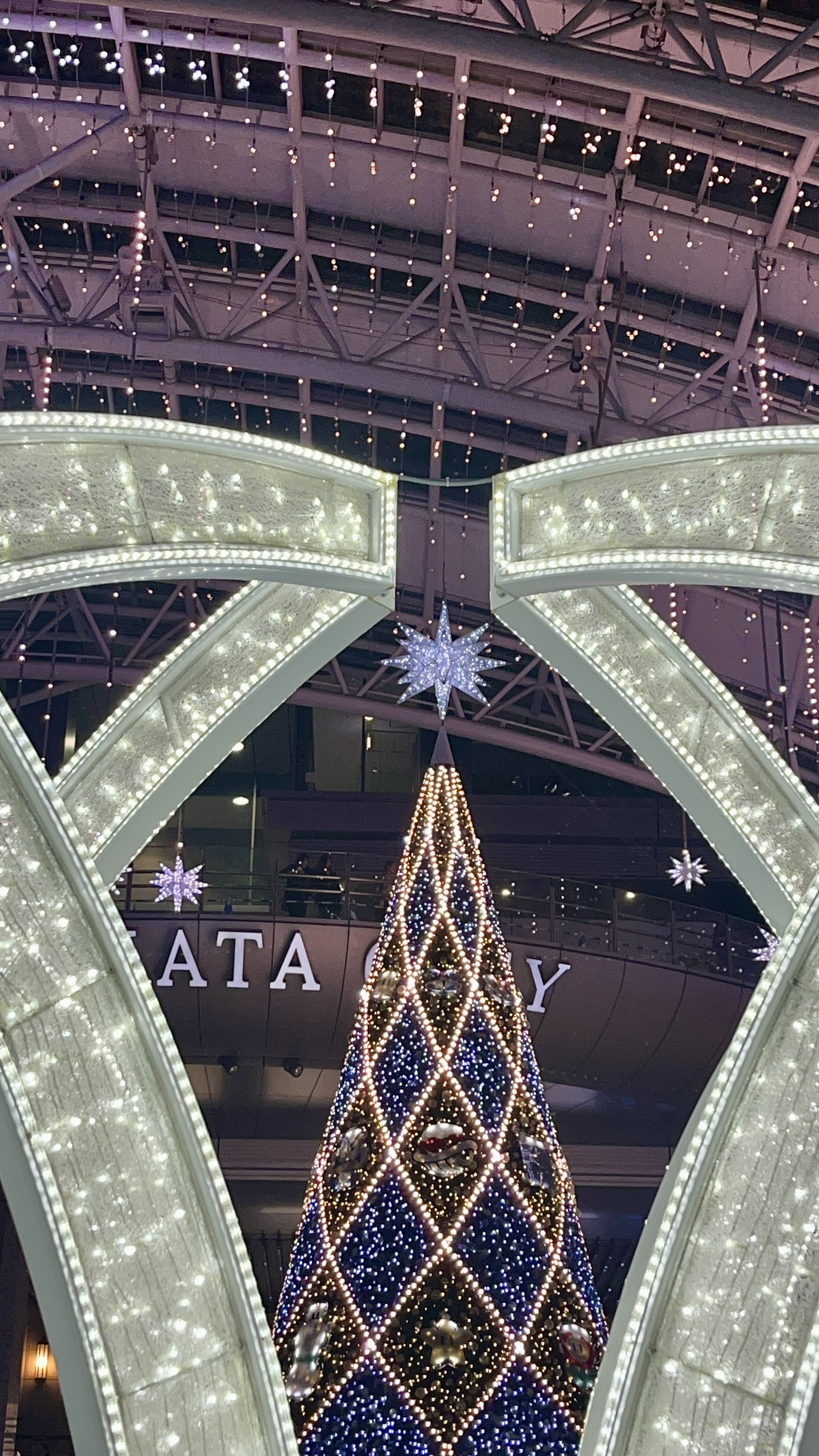 하카타역에 도착하자마자 제일 먼저 보인 건 슈퍼마리오 컨셉의 커다란 트리였어요. 멀리서도 눈에 띌 정도로 화려하고 귀여운 트리 덕분에 모두가 서서 사진을 찍고 있더라고요. 크리스마스 분위기를 이렇게 제대로 내다니, 일본은 확실히 디테일에 진심이에요.